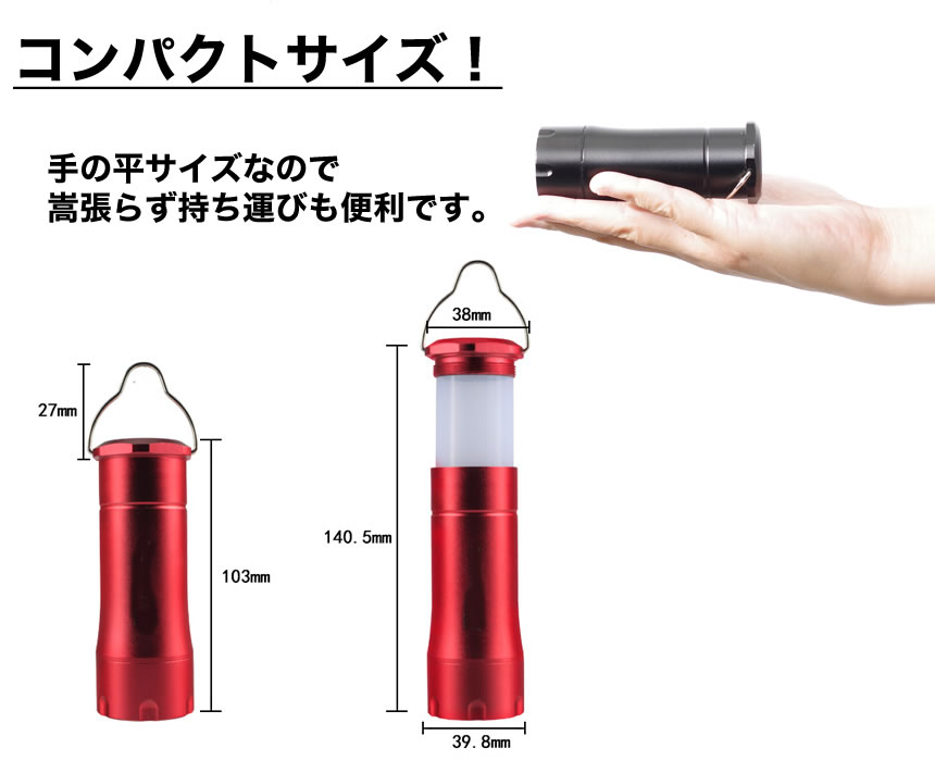 点灯→点灯(減光)→点滅 コンパクトサイズなので持ち運びにも便利です。